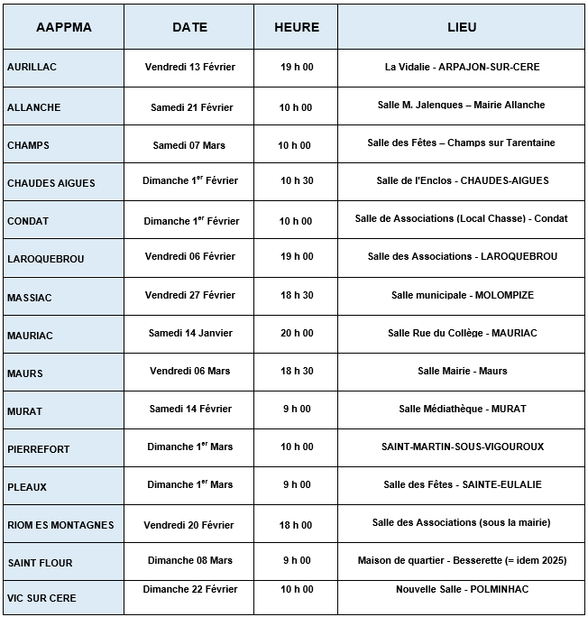 Dates des Assemblée Générale des AAPPMA - 2026