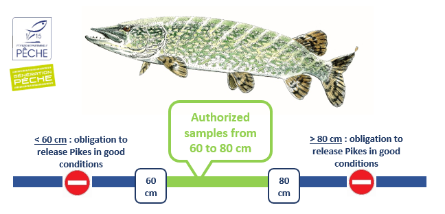 Attention ! Des fenêtres de capture sont également instaurées (Règlement Intérieur FD) sur différents lacs, seuls les brochets mesurant entre 60 et 80 cm peuvent être conservés sur les lacs de : Saint-Etienne-Cantalès, Nèpes, Enchanet, Gour Noir, Lanau, Tact. |